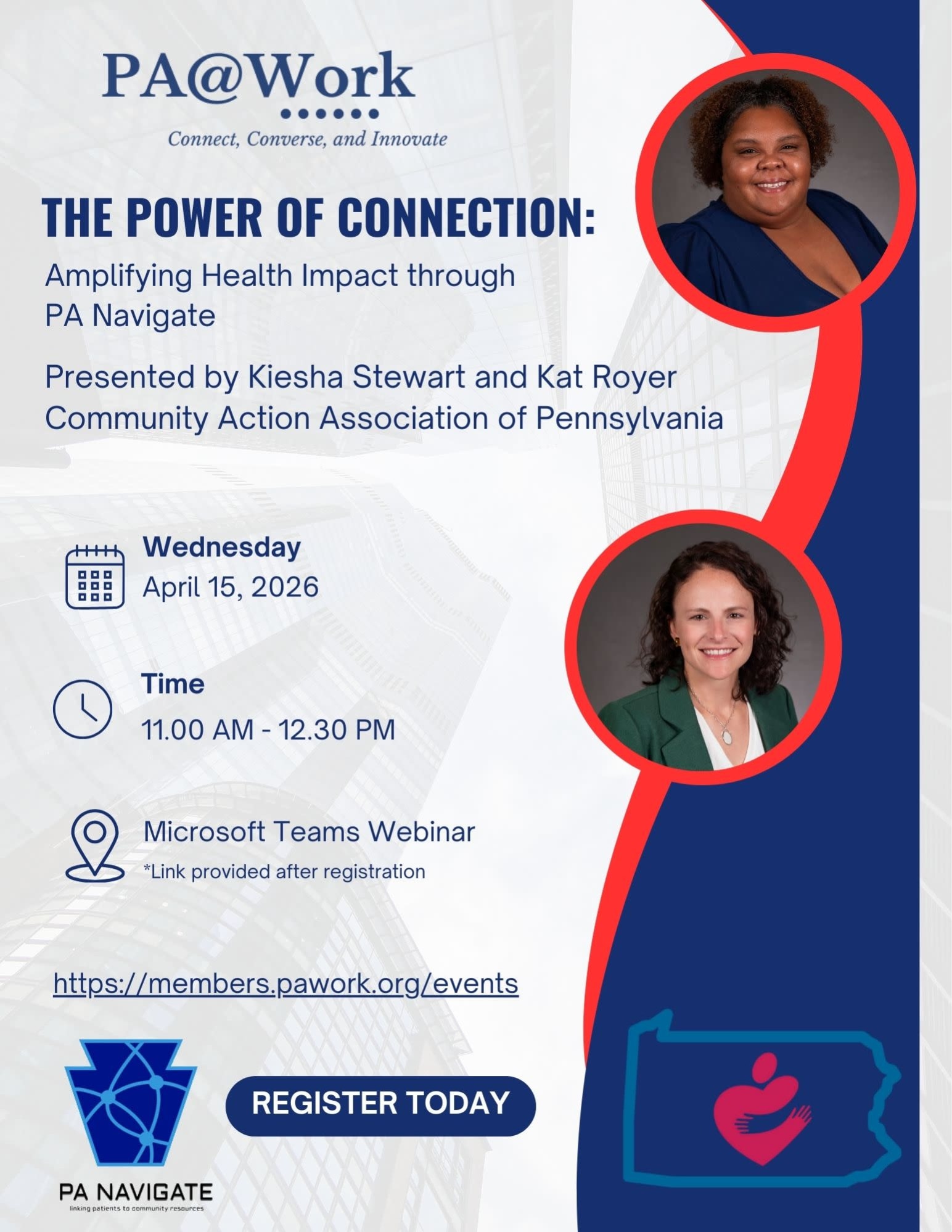 The Microsoft Teams link will be sent 3-5 days before the meeting. Please email info@pawork.org if you need assistance!